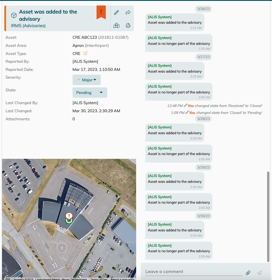 In this case, a IRMS observation will be created on the first occurrence and the re-activation of the advisory will be appended to the details of the “open” observation.