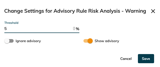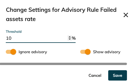 To do so , go to CORTEX Service "Settings"→ "Advisory Settings" ; Slide the Show toggle ON to re-enable the specific Rule.