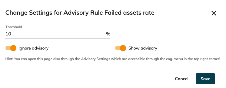 These advisory-rule can have different severities (low, medium, high) which will have an influence on which advisory we will show first and their color. The rules can also not be shown ( until activated again manually) or ignored until the rule is activated again because the issues has gotten more severe.