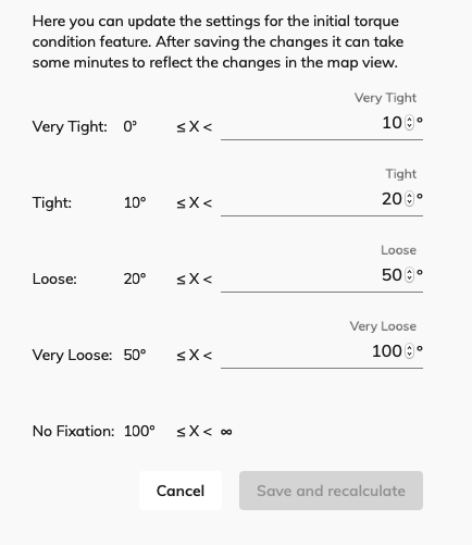 Torque Settings for ITC ( initial torque condition) |