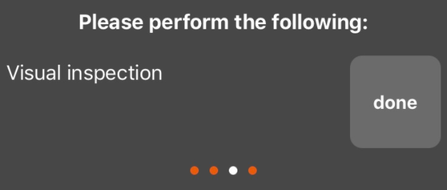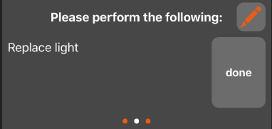 Allows for marking an asset as "Faulty". Other devices that are in Ad-hoc mode or Mapview will see the asset as red and will know that it needs to be replaced. Replace (QR) identifier Allows for replacing the Asset identifier - QR code. Which can be used to easily identify asset within a building where no accurate location positioning is possible. Report Observation Creating an observation for that asset. Open in Web Currently not usable from the phone - as the mobile version of the web app version is not ready yet. | Perform maintenance task by ad-hoc. You can edit the task to be performed by use of the edit button. Overview of sub-tasks to be performed