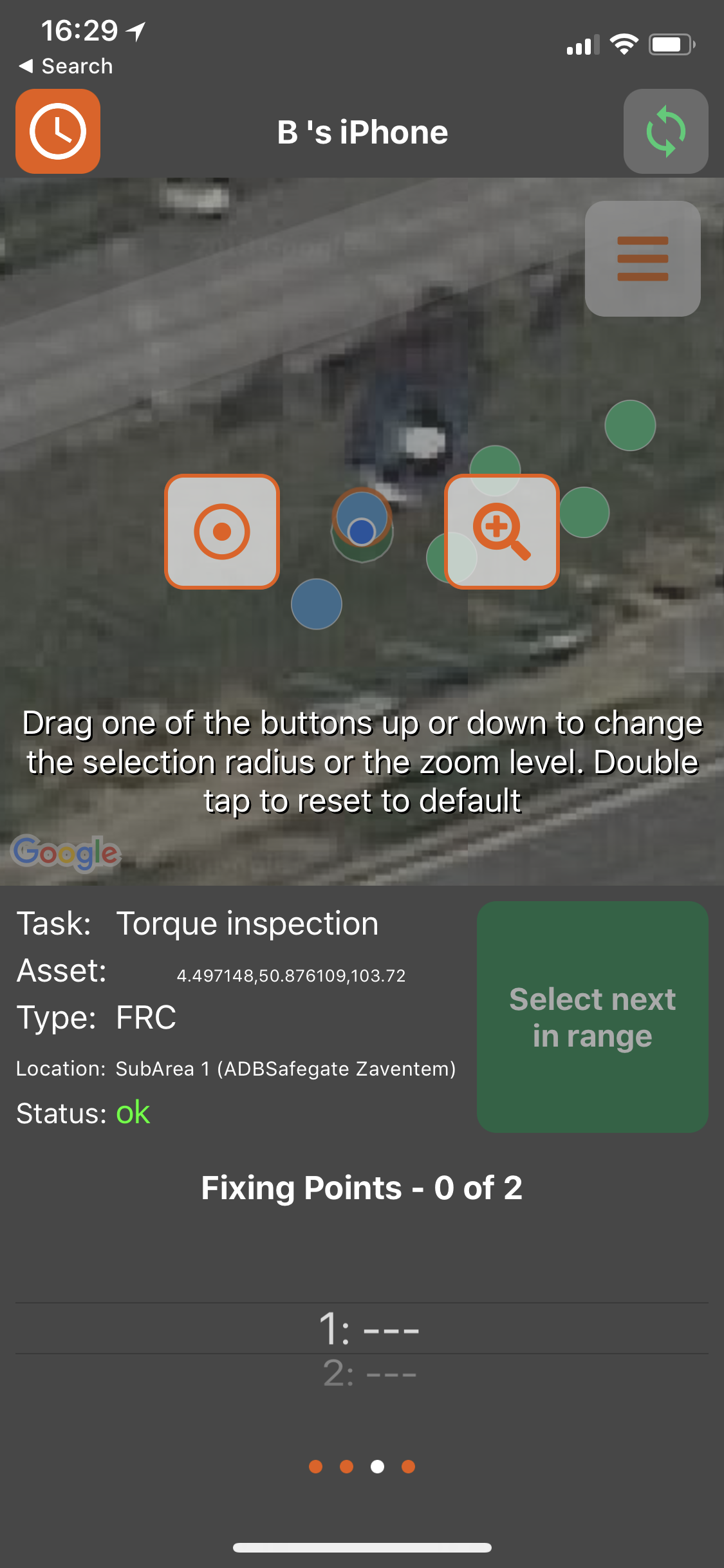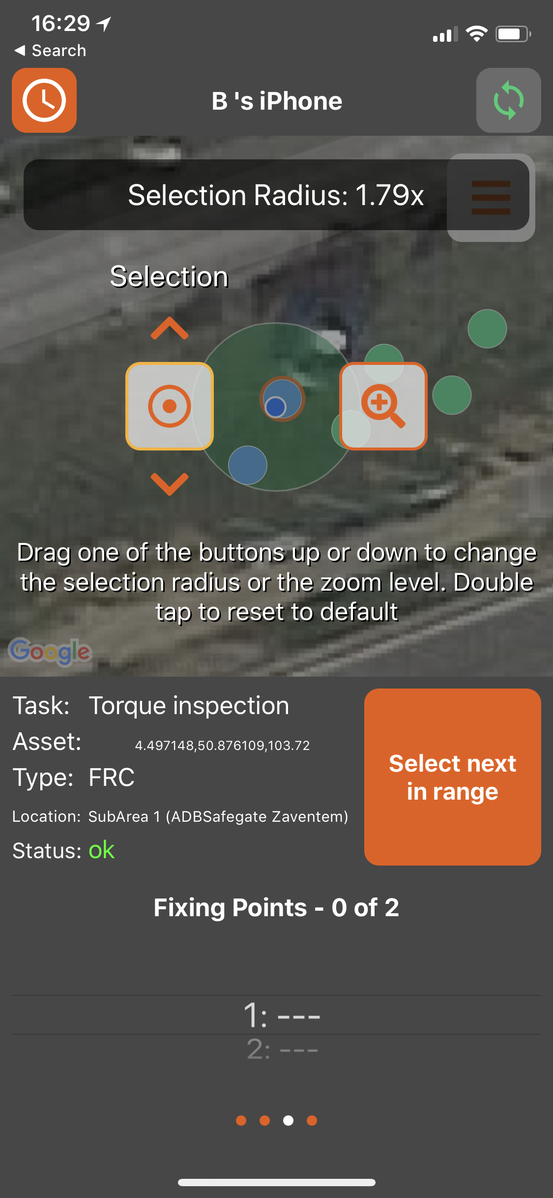 For best performance with mobile devices make sure you have optimal cellular connection or an additional GPS receiver. Have a look at How-to get good positioning accuracy for ALIS (iPhone and iPad) . This ensures that minimal user input is needed for identifying the right asset by use of the auto-selection tool and thus registering maintenance data onto it.