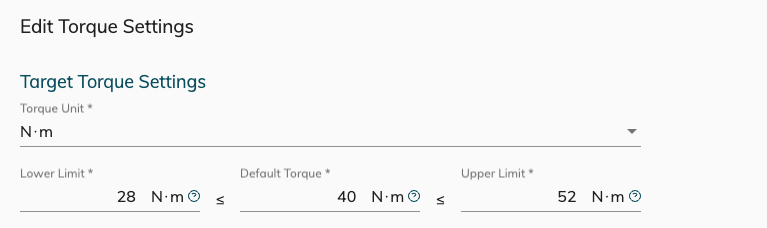 The acceptable section for good torque values is based on the Target torque and tolerance as defined On the Webapp Torque settings.