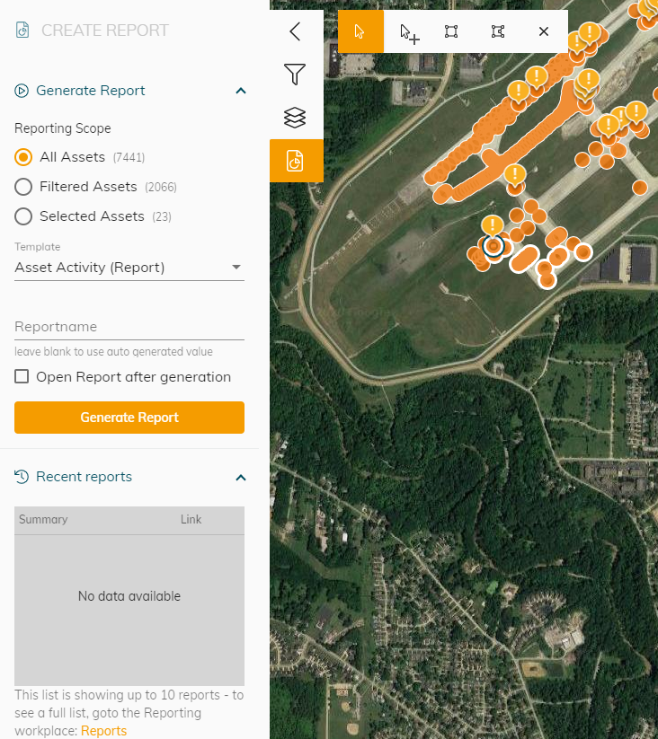 This article will show you how to create a report on a specific or group of assets from the Map. For reports on work-orders - please see How-to create a workorder report.