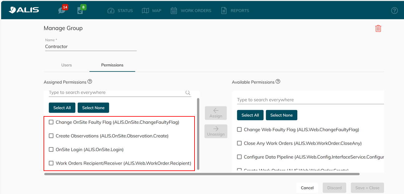 Contractor accounts can be created for external contractors that should have limited access to the assets information.